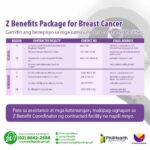 Effective March 30, 2024, the Z Package for breast cancer was raised to a maximum of P1.4 million paid by Philhealth directly to CONTRACTED HEALTH FACILITIES for members and their qualified dependents who are diagnosed as stage 0 to 4 breast cancer patients. To qualify, it is IMPORTANT to go ONLY to the selected CONTRACTED HOSPITALS (listed below) and have the procedures done from the start of the diagnosis to the end of the treatment. Coverage for breast cancer is P1.4 million. If total cost is greater that P1.4 million, Philhealth member will co-pay.