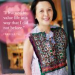 One of the surprising challenges is the loss of your hair. I know this may sound shallow, but it represents something beyond vanity. The loss of your hair is like a very public sign of your sickness. It is an external symbol of your interior struggles. It points to the changes in your body, the loss of your health and vitality, the side effects from chemo. Initially, I thought I would be devastated. I prepared for it by buying all kinds of bandanas and even a wig. In the end, I didn’t use the wig as it felt very heavy on my head. But when it happened, I forced myself to step out of the house and resume my normal activities…Then I discovered the most wonderful thing — freedom. I could get ready for my day in 15 minutes without the usual rituals that I would undertake to fix my hair. It also freed me from the trivial concerns about my looks. It was such a liberating experience!